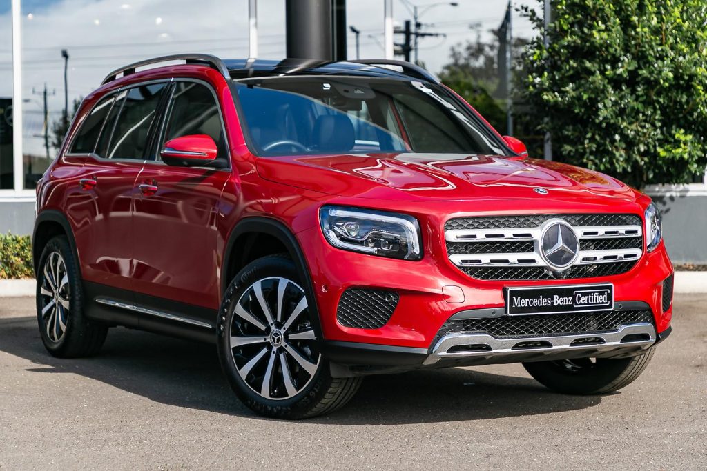 Incredibly efficient, immensely safe & fantastically versatile 7-Seater Mercedes-Benz GLB200 presented in the stunning combination of designo Patagonia Red Metallic over Comfort Seats in Black ARTICO upholstery.
